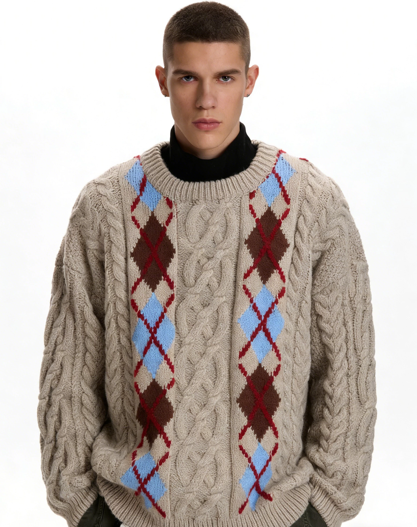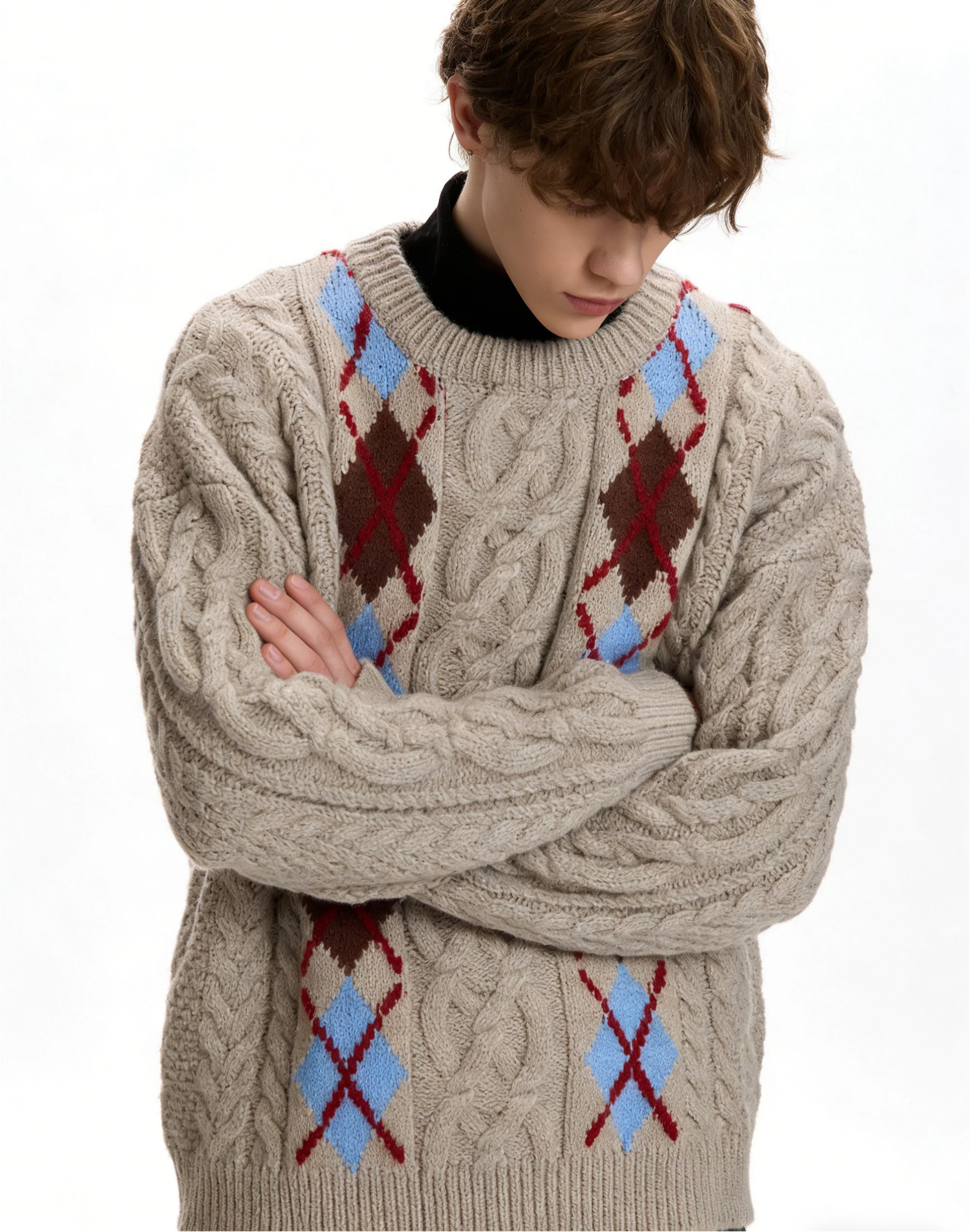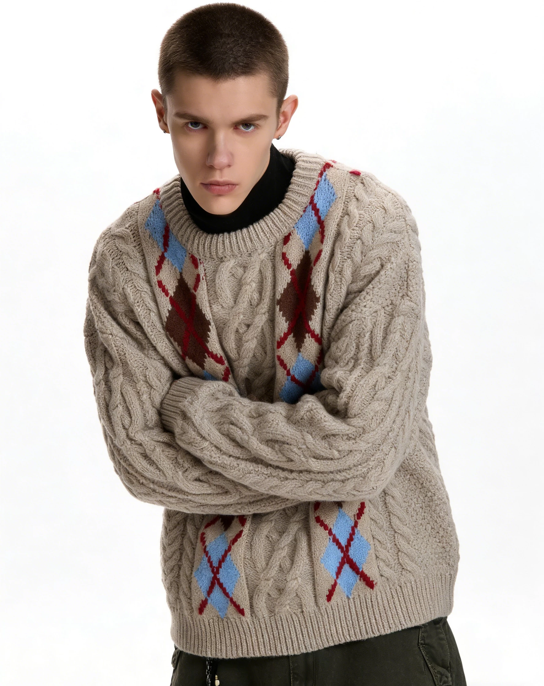 o The chunky cable-knit fabric is soft and fluffy, offering excellent warmth while enhancing the sweater’s texture and creating a laid-back, relaxed visual appeal.